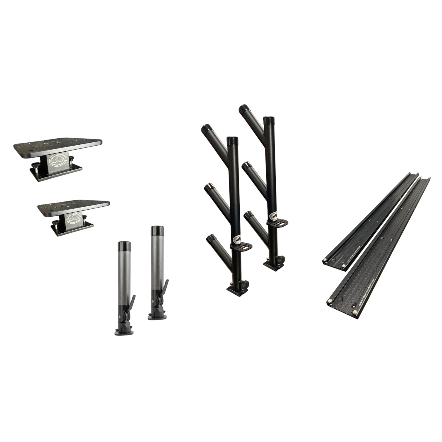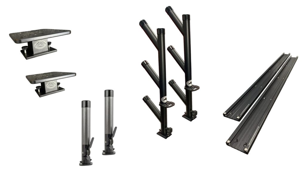 (2) 48″ Superior Tracks: Built from marine-grade aluminum, these coated tracks provide a rock-solid mounting base for your trolling gear while allowing easy customization and movement along your gunnels. -Black only